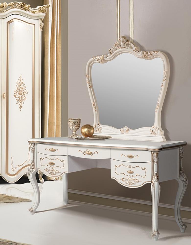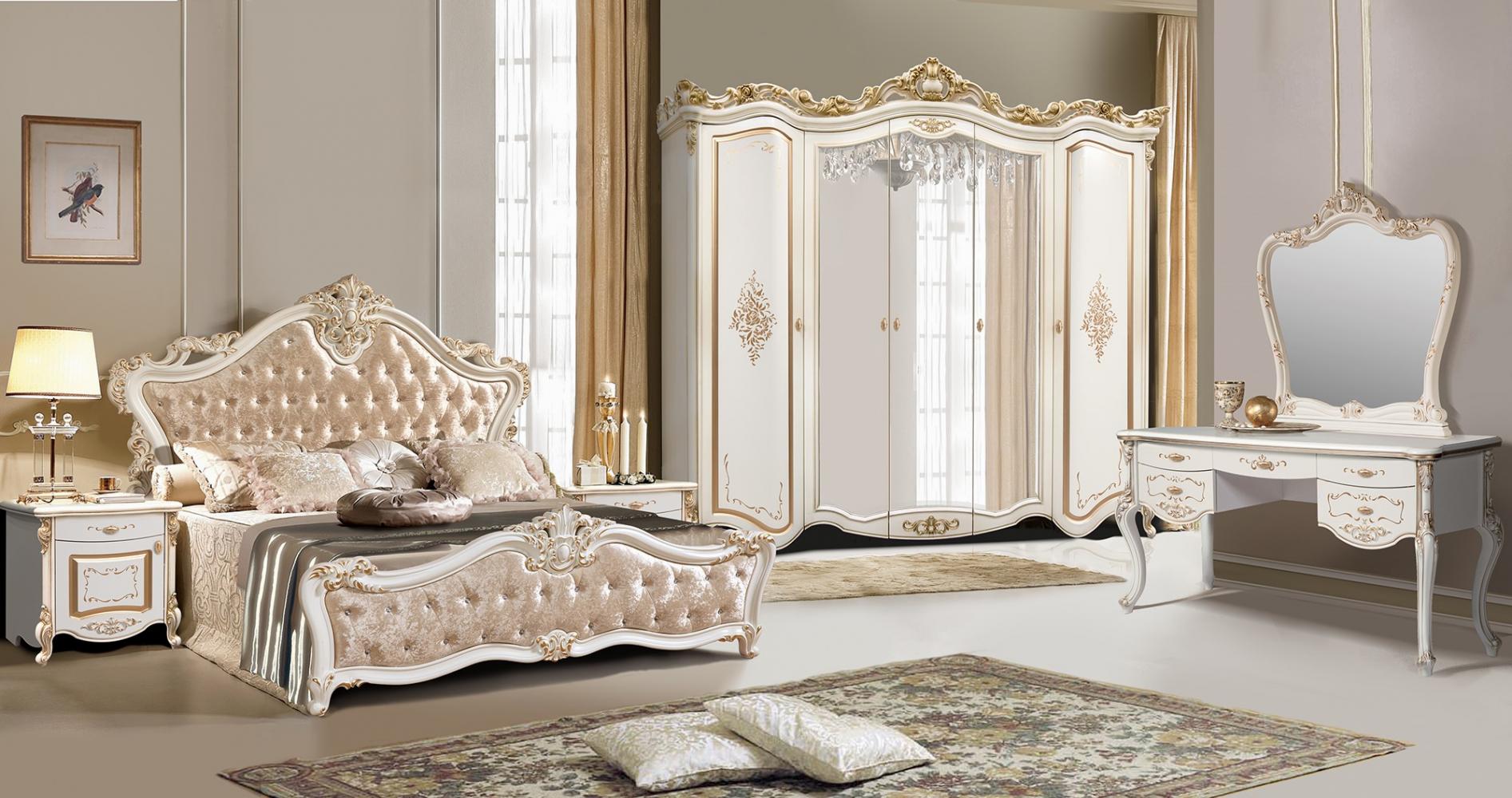 изогнутые ножки тумбочек и комода подчеркивают классический стиль с